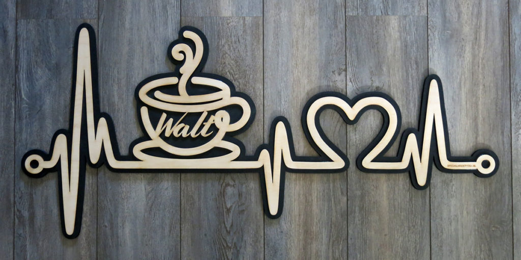 Een houten stropdas misschien, of een een slogan uit hout of acryl gesneden, barokke versiering voor op je keukenkastjes.